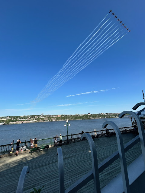 I did share a postcard [here] of the Snowbird flight group that surprised us though I'm sure residents knew of their plan to put on a brief show over the St. Lawrence on the evening of the 25th. We had an excellent dinner at an Italian restaurant that first night.