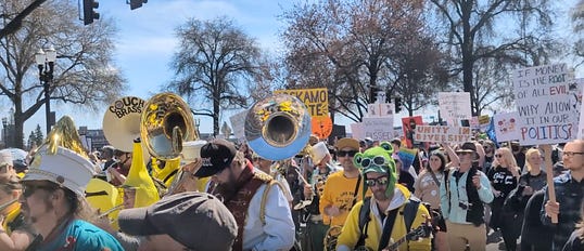 Social movements scholar Dr. Liz Corrigan explains that mass events with huge turnout of people “who share some similarity of grievance against state actions” are critical to building a movement. Large numbers gathered without imposed ideological litmus tests encourage others to join. ‘Safety in numbers’ is real. “At protests, folks are registering voters, organizing volunteers, building databases for further actions, debating various courses of action, and creating relationships,” Corrigan observes. “It is literally how people build skills for solidarity actions as they are forced into more immediate confrontation with the state.”